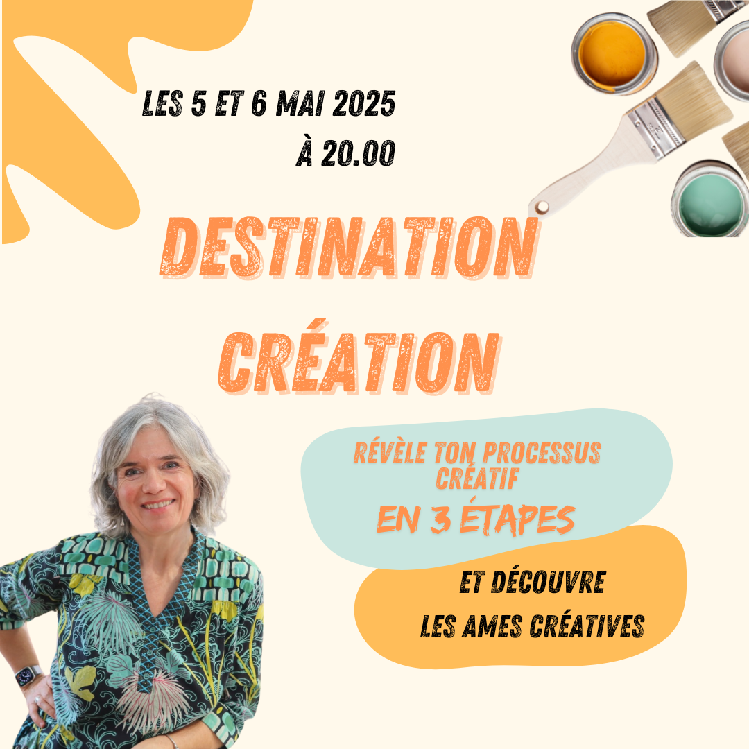 Tu désires rejoindre les Ames Créatives, et tu veux en savoir plus? Inscris-toi à l'atelier Destination Création qui aura lieu les 5 et 6 mai prochains pour découvrir le groupe de l'intérieur, poser tes questions et commencer à travailler avec moi.